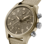 IWC Schaffhausen Pilot’s Top Gun ‘Mojave Desert’ 41mm Beige Ceramic Chronograph Watch IW389402. Beige ceramic 41.9mm case and bezel all on a tan rubber strap. This men’s watch has a brown dial with tan luminous applied hands and hour markers as well as a day/date display at the 3 o’clock position. Water resistant up to 100m and sapphire crystal glass. 46 hour power reserve. Automatic chronograph movement.